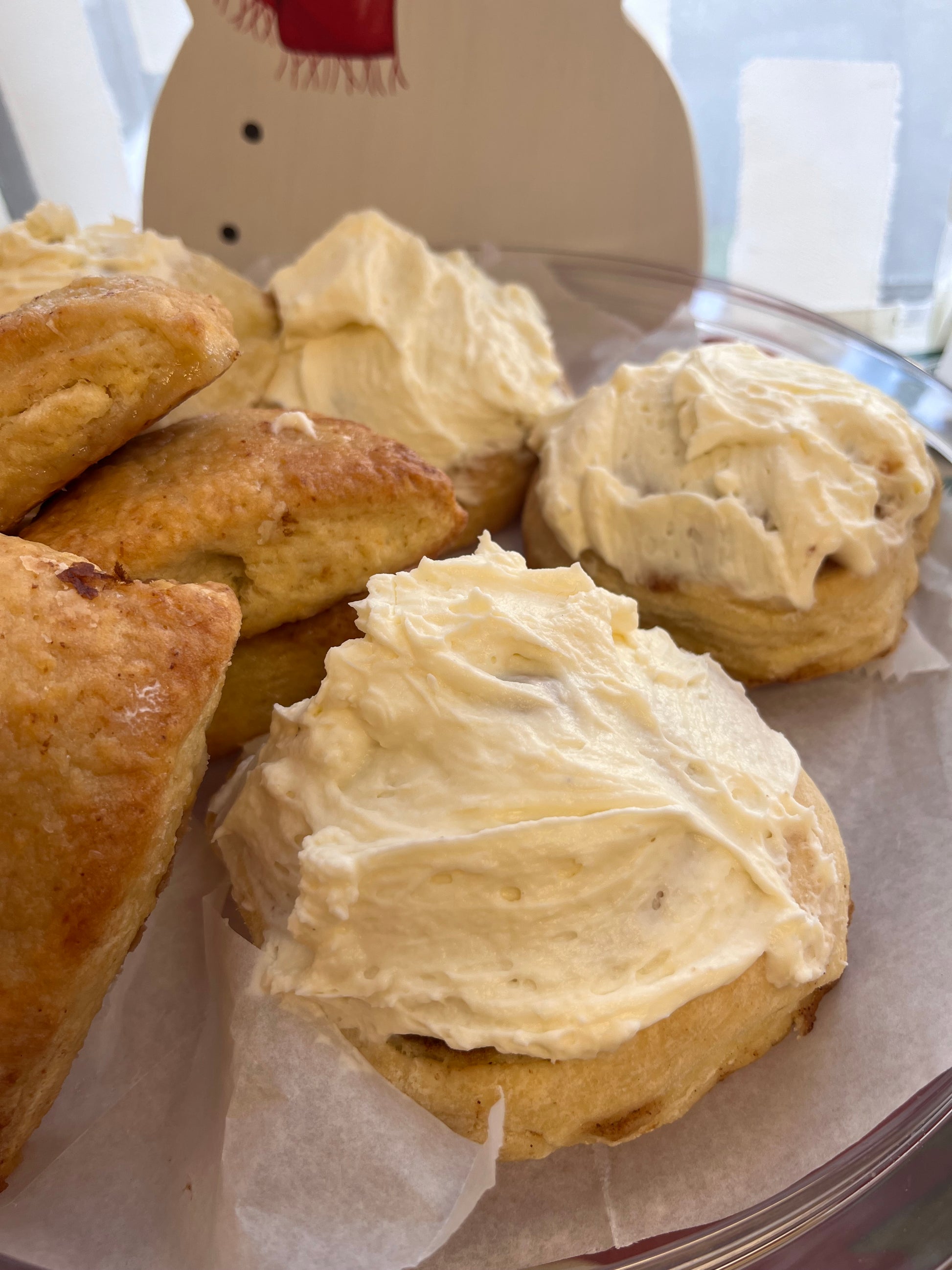 unbleached bread flour, sourdough starter (unbleached all-purpose flour, purified water, mature starter), poolish (purified water, unbleached all-purpose flour, yeast), whole milk, eggs, butter, sugar, salt, cinnamon, yeast; icing: mascarpone cheese, powder sugar, butter.